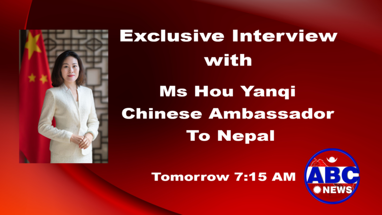 यसैबीच नेपालका लागि जनगणतन्त्र चीनकी राजदूत हाउ यान्छीको एबीसी ज्यूज टेलिभिज नेपाल–चीन दौत्य सम्वन्धको ६५ औं वर्ष पूरा भएको उपलक्ष्यमा विशेष अन्तर्वार्ता दिनुभएको छ । अन्तर्वार्ता अंग्रेजी भाषामा रहेको छ । त्यसको यहां भावानुवाद गरिएको छ ।