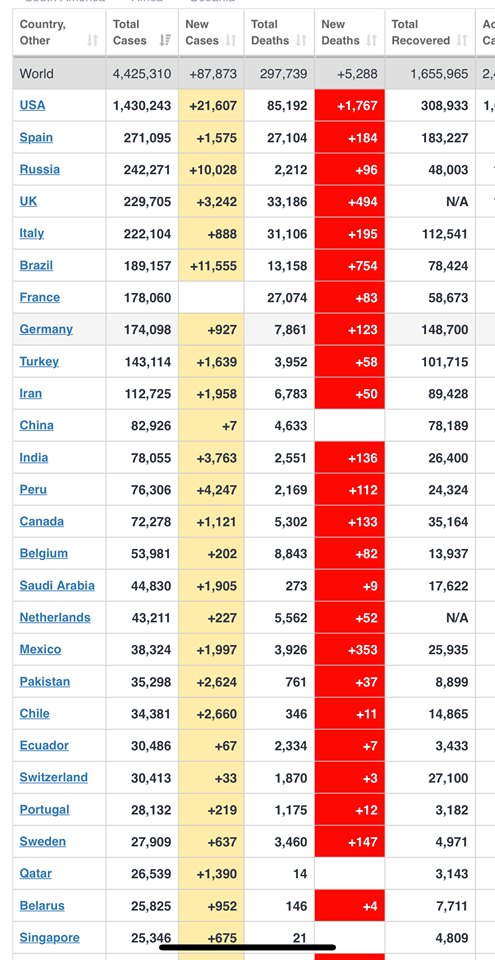 कोरोना भाइरसबाट विश्वभर २ लाख ९७ हजारको मृत्यु, ४४ लाख २८ हजारभन्दा बढी संक्रमित (कहाँ कति सूचिसहित)