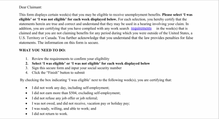यदि तपाईले छुटेका हप्ताको प्रमाणिकरणका लागि इमेल प्राप्त गरिसक्नुभएको छैन भने नआत्तिन डिपार्टमेन्ट अफ लेवरले सुझाव दिएको छ । आफूहरुले क्रमश छुटेकाहरुको पहिचान गरेर इमेल पठाउँदै जाने डिपार्टमेन्ट अफ लेवरको भनाई छ ।
