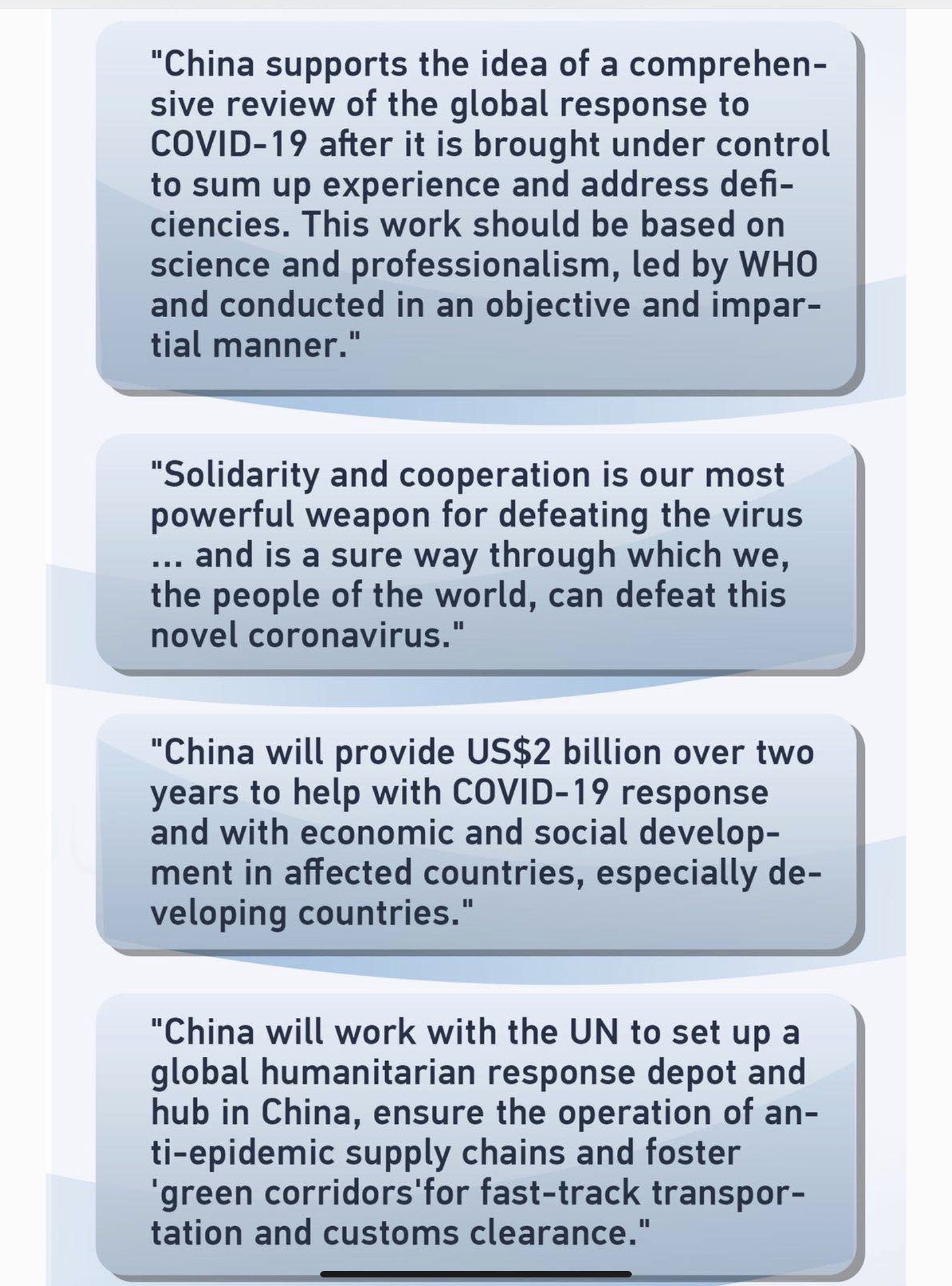 Calling for building a global community of health for all, the Chinese president made proposals and announced concrete measures to boost the global fight against COVID-19.