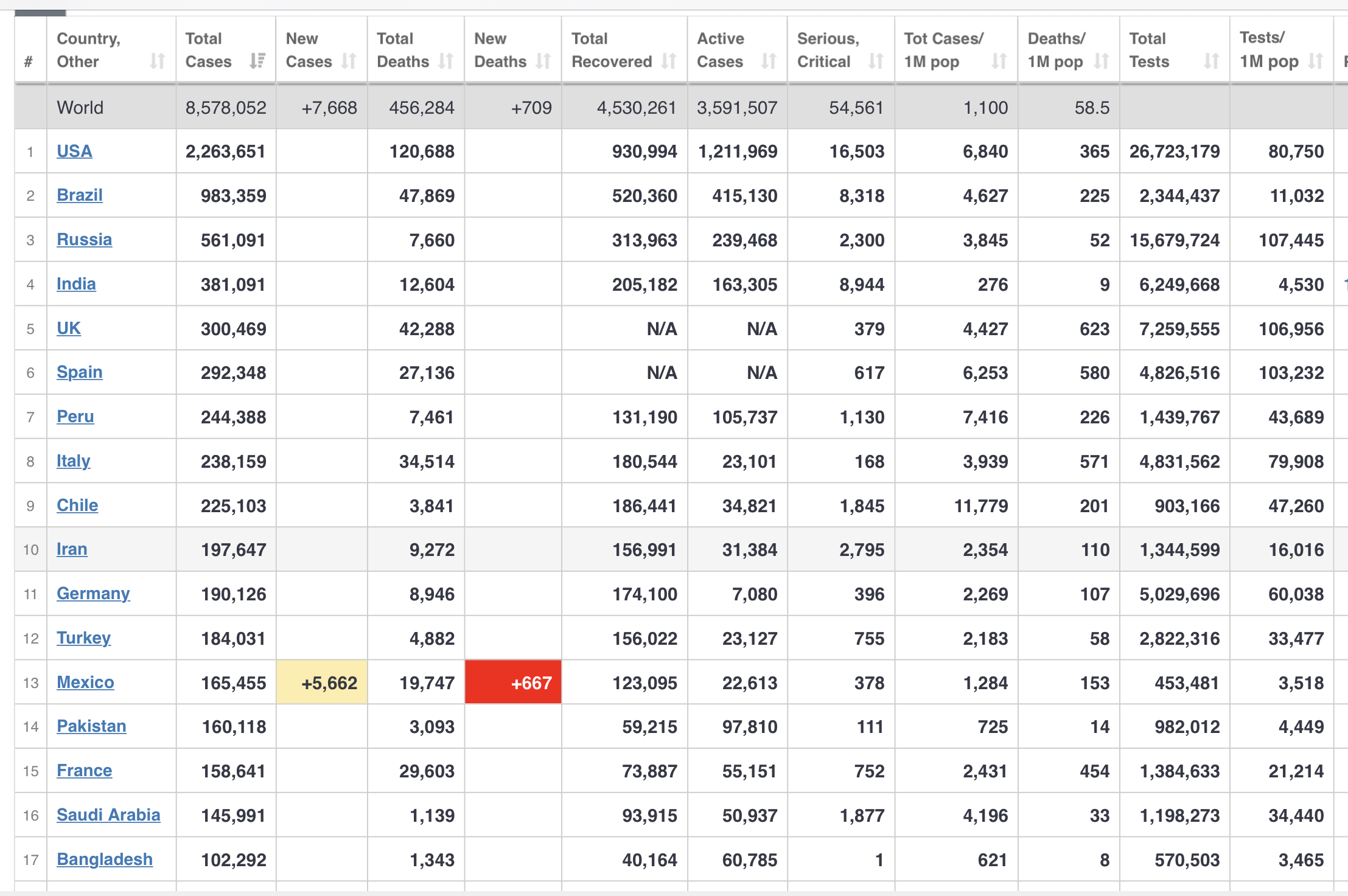 उपचार गराइरहेका १२ लाख १२ हजार १७५ जनामध्ये १६ हजार ५०३ जनाको अवस्था गम्भीर रहेको छ । पछिल्लो समय अमेरिका कोरोनाबाट मृत्यु हुनेको संख्या कम हुदै गएको छ ।