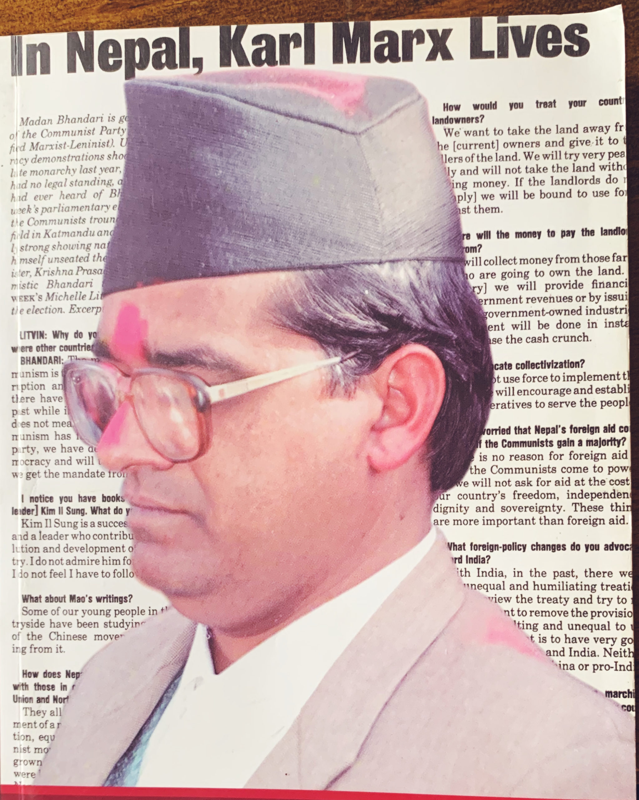 (अमेरिकी प्रसिद्ध प्रत्रिका न्यूजविकको मे २७ १९९१ को अंकमा उक्त अन्तरवार्ता प्रकाशित भयो । सम्भवत न्यूजविकमा अन्तवार्ता प्रकाशित हुने उहाँ पहिलो नेपाली राजनीतिज्ञ हुनुहुन्छ । न्यूजविकका मिकेल लिट्विनले कमरेड भण्डारीसंग लिएको उक्त अन्तवार्तालाई नेपालीमा अनुवाद शार्दूल भटट्राईले गर्नु भएको हो, मदन भण्डारी संकलित रचनाहरु –६ बाट लिएको हो ) ।