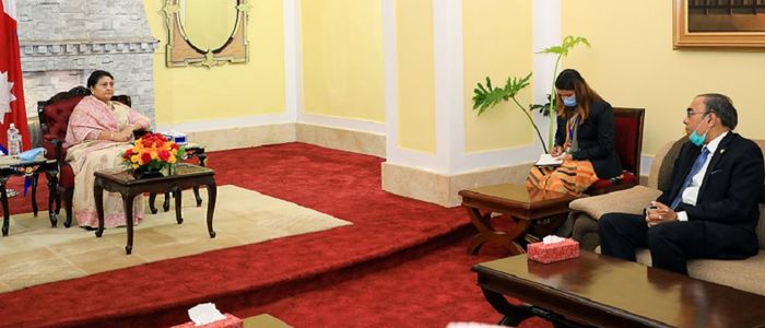 काठमाडौँ, २३ असार । राष्ट्रपति विद्यादेवी भण्डारीसमक्ष दक्षिण एशियाली क्षेत्रीय सहयोग सङ्गठन (सार्क) का नवनियुक्त महासचिव एसाला रुवान वीराकूनलेले राष्ट्रपतिभवन, शीतलनिवासमा आज शिष्टाचार भेट गरेका छन् ।