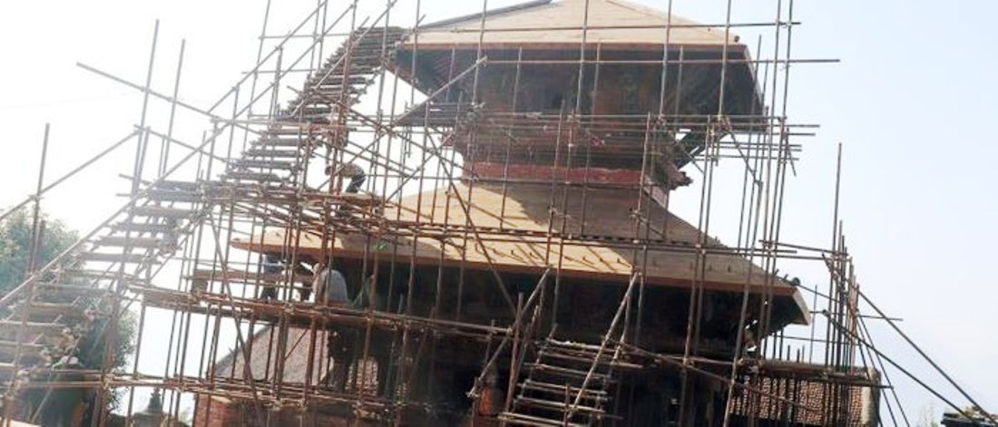 बेत्रावती, २९ असार । विनाशकारी भूकम्पबाट क्षति पुगेको ऐतिहासिक धार्मिक महत्व बोकेको शक्तिपीठ नुवाकोटको भैरवीदेवी मन्दिरको पुनःनिर्माण अन्तिम चरणमा पुगेको छ । मन्दिरमा तामाको पातामा सुनको जलपसहितको छाना लगाउन थालिएको छ ।