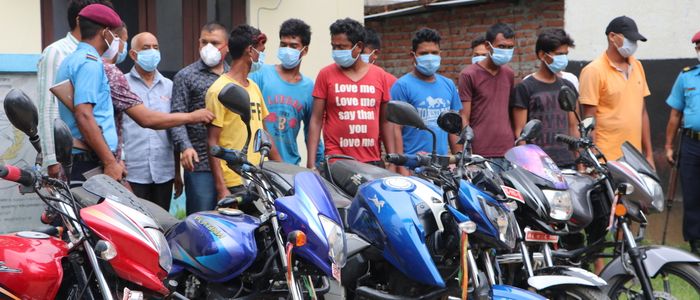 महेन्द्रनगर, ३ साउन । गत असार १५ गते कञ्चनपुर प्रहरीले मोटरसाइकल चोरी गरी सरकारी कागजात कीर्ते गरी मोटरसाइकल किनबेचमा संलग्न दुई कर्मचारीसहित १२ जनालाई सार्वजनिक ग¥यो ।