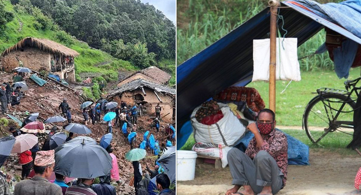 “गत असार २६ गतेदेखि स्थानीय कालिका प्राविमा बसेका छौँ । विद्यालयको छाना चुहिन्छ । खाने अन्न छैन, घरमा भएको अन्न पिस्ने घट्ट खोलामा आएको बाढीले बगायो, के खाएर बाँच्ने हो”, कामीको भनाइ छ । बाढीपहिरोको त्रासले एक हजार ५५ परिवार विस्थापित भएर स्थानीय विद्यालय, गोठ र चौरमा बसिरहेका छन् तर धेरै परिवारसँग खाद्यान्न सकिँदै गएको छ ।