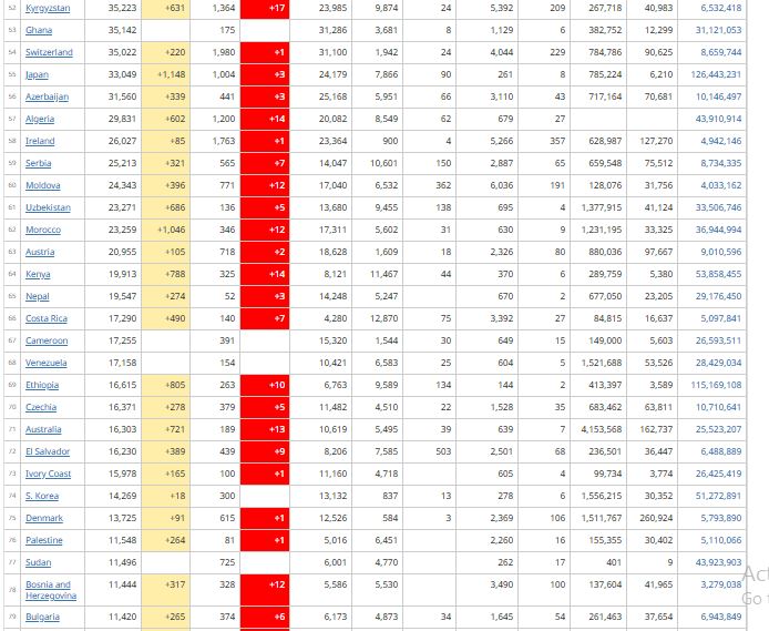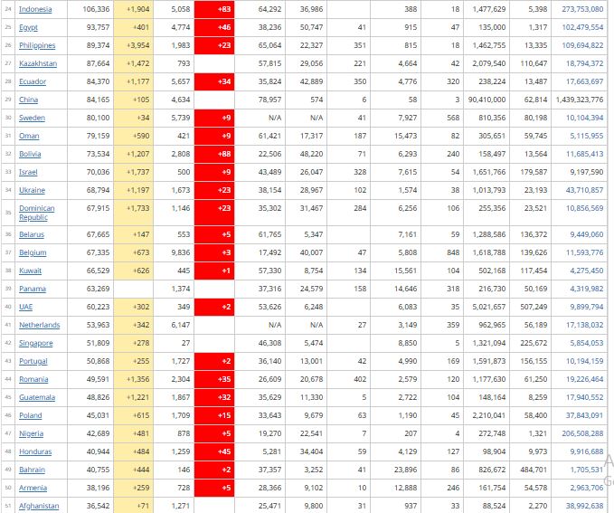 यस्तै एसियाली मुलुकहरूमा ९५ हजार ३९५ जनाको मृत्यु भएको छ । ४२ लाख १० हजार ३ जना संक्रमित भएकोमा ३१ लाख ७ हजार ६५० जना संक्रमणमुक्त भएका छन् ।