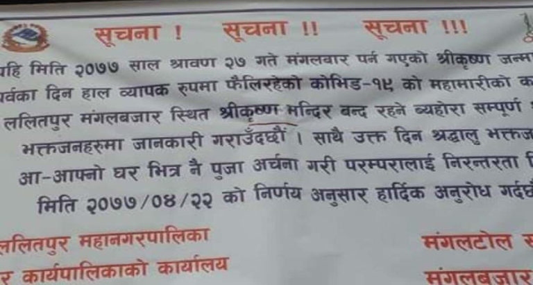 यसदिन देशभरिका कृष्ण मन्दिरमा भगवान् श्रीकृष्णको पूजा–आराधना, प्रवचन, भजनकीर्तन गर्नाका साथै विशेष गरी महिला, पुरुष ‘व्रत’ बसी रातभर जाग्राम बस्ने प्रचलन छ। पाटनस्थित कृष्ण मन्दिरमा पनि पोहोर–परार श्रद्धालुको घुँइचो लाग्थ्यो। यसपालि कोरोनाभाइरसको संक्रमणका कारण कृष्ण मन्दिरमा श्रद्धालु एकदमै कम छन्।