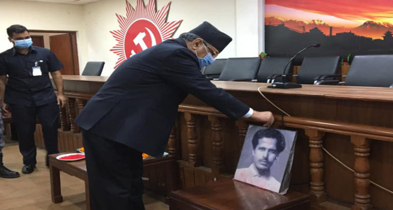 काठमाडौं, २ भदौ । नेपाल कम्युनिष्ट पार्टी नेकपाका अध्यक्ष तथा पूर्व प्रधानमन्त्री प्रचण्डले सहिद रामवृक्ष यादवको तस्विरमा माल्यार्पण गरेका छन् । सहिद यादवको २६ औं स्मृति दिवसका अवसरमा पार्टी कार्यालय धुम्बारहीमा अध्यक्ष प्रचण्डले यादवप्रति उच्च सम्मानका साथ श्रद्धाञ्जली व्यक्त गर्दै माल्यार्पण गरेका हुन् ।