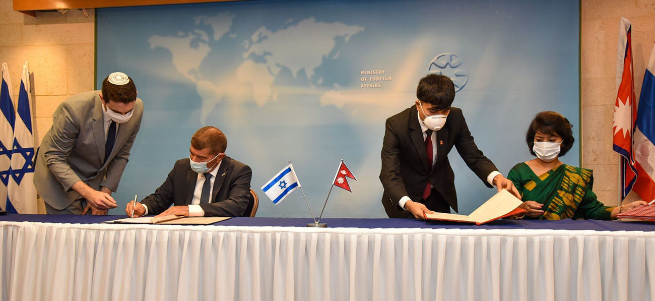 काठमाडौं,६ भदौ । नेपाल र इजरायलबीच कूटनीतिक राहदानी बाहकलाई एक–अर्को देशको यात्रा गर्दा ९० दिनसम्म प्रवेशाज्ञा लिन नपर्ने गरी सम्झौता भएको छ । इजरायलको जेरुसेलमस्थित परराष्ट्र मन्त्रालयमा आयोजित कार्यक्रममा नेपाल सरकारका तर्फबाट इजरायलका लागि नेपाली राजदूत डा अन्जान शाक्य र इजरायल सरकारका तर्फबाट इजरायली परराष्ट्रमन्त्रीले सोसम्बन्धी सम्झौतामा हस्ताक्षर गर्नुभएको सो दूतावासले जानकारी दिएको छ ।