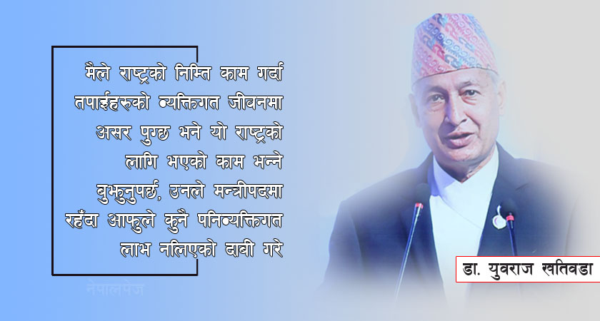 सरकार बाहिर रहे पनि मुलुकको हितमा लागिरहन्छु : युवराज खतिवडा (प्रमुख कार्य तथा उपब्धिहरु सहित)