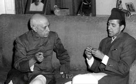 सन् १९६० मा भारतीय नेता जवाहरलाल नेहरुका साथ बीपी कोइराला । तस्वीरस् फोटो डिभिजन