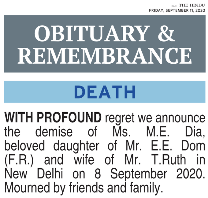 मिडियाको यही रवैयाप्रति फेरि एक पटक खुलेर आलोचना भएको हो । भारतको अङ्ग्रेजी संस्करणको अखबार (द हिन्दू) ले भारतमा स्वतन्त्र मिडियाको अवसान भएको भन्दै समवेदना छापेको छ । शुक्रबार प्रकाशित विज्ञापनलाई हाल भारतीय मिडियामा देखिएको तिनै बेथिति र विसंगतिविरुद्धको प्रहारका रुपमा हेरिएको छ । वर्गीकृत विज्ञापनअन्तर्गत छापिएको उक्त शोक सन्देशमा सांकेतिक रुपमा ‘स्वतन्त्रताकी छोरी एवं सत्यकी पत्नी मिडियाको निधन भएकोमा परिवार तथा मित्रको तर्फबाट समवेदना प्रकट’ गरिएको छ ।