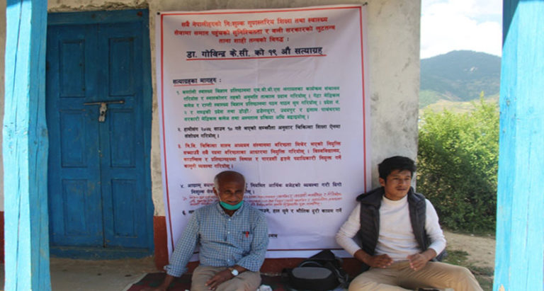 नेपालीहरुको निःशुल्क गुणस्तरीय शिक्षा तथा स्वास्थ्य सेवामा समान पहुँचको सुनिश्चितता र सरकारविरुद्ध जुम्लामा १९ औं सत्याग्रह सुरु गरेको डा. गोविन्द केसीको भनाई छ । जुम्लाको चन्दननाथ-६ रानिचौरमा रहेको वाविरा मन्दिरमा डा. केसीले १९ औं सत्याग्रह सुरु गरेका हुन् । आफूसँग २०७५ साउन १० गते भएको सम्झौता अनुसार चिकित्सा शिक्षा ऐनमा संशोधन गरिनुपर्ने लगायतका मागहरु राखेर डाक्टर केसीले अनसन सुरु गरेका हन् ।