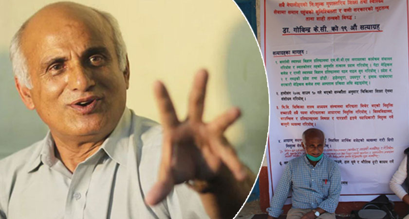 नेपालीहरुको निःशुल्क गुणस्तरीय शिक्षा तथा स्वास्थ्य सेवामा समान पहुँचको सुनिश्चितता र सरकारविरुद्ध जुम्लामा १९ औं सत्याग्रह सुरु गरेको डा. गोविन्द केसीको भनाई छ । जुम्लाको चन्दननाथ-६ रानिचौरमा रहेको वाविरा मन्दिरमा डा. केसीले १९ औं सत्याग्रह सुरु गरेका हुन् । आफूसँग २०७५ साउन १० गते भएको सम्झौता अनुसार चिकित्सा शिक्षा ऐनमा संशोधन गरिनुपर्ने लगायतका मागहरु राखेर डाक्टर केसीले अनसन सुरु गरेका हन् ।