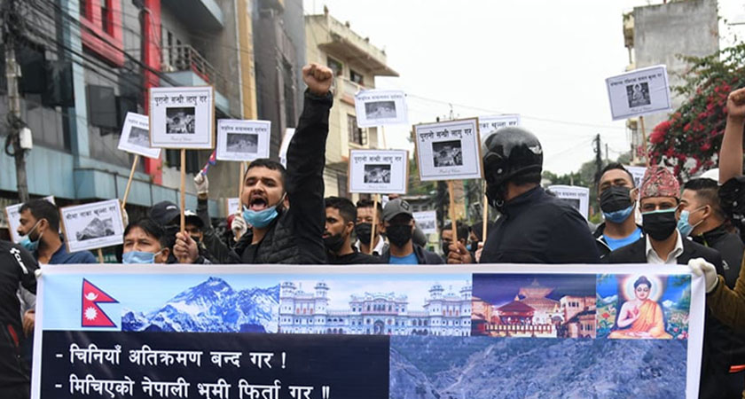 काठमाडौं, ७ असोज । सीमा अतिक्रमण विरोधमा चिनियाँ दूतावास अगाडि प्रदर्शन भएको छ । हुम्लामा सीमा अतिक्रमण गरेको भन्दै काठमाडौंको बालुवाटारस्थित चिनियाँ दूतावास अगाडि प्रदर्शन भएको हो ।