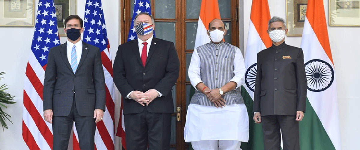 काठमाडौं, ११ कात्तिक । भारत र अमेरिकाको बीचमा मंगलबार एक महत्वपूर्ण रक्षा सम्झौतामा हस्ताक्षर भएको छ । भारत र चीनको बीचमा केही महिनायता तनाव बढिरहेको बेला अमेरिकासँग भारतले यस्तो सम्झौता गरेको हो । यो समयमा भएको यो सम्झौतालाई निकै महत्वका साथ हेरिएको छ ।