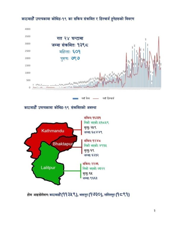 भक्तपुरमा हालसम्म ६ हजार २३२ जनामा संक्रमण पुष्टि हुँदा निको हुनेको संख्या ४ हजार ९१५ पुगेको छ भने ललितपुरमा कुल ९ हजार ६६३ संक्रमितमध्ये ७ हजार ३२२ जना निको भएका छन् ।