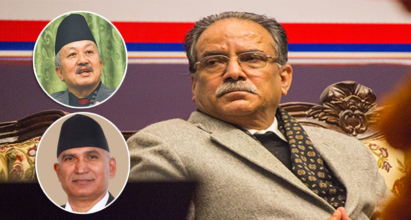 काठमाडौं ५ मंसिर । नेपाल कम्युनिष्ट पार्टी नेकपा अध्यक्ष पुष्पकमल दाहाल ‘प्रचण्ड’, महासचिव विष्णु पौडेल र नेता सुवास नेम्वाङबीच शुक्रबार छलफल भएको छ । पार्टी मुख्यालय धुम्बाराहीमा शुक्रबार दिउँसो भएको भेटमा पार्टीभित्र देखिएको विवादबारे छलफल भएको जनाईएको छ ।