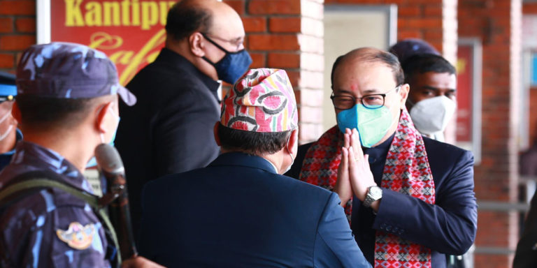 परराष्ट्र सचिव भरतराज पौड्यालको निमन्त्रणमा २ दिने औपचारिक भ्रमणमा आउनुभएका भारतीय विदेश सचिव हर्षवद्र्धन श्रृंगला त्रिभुवन विमानस्थलमा ।