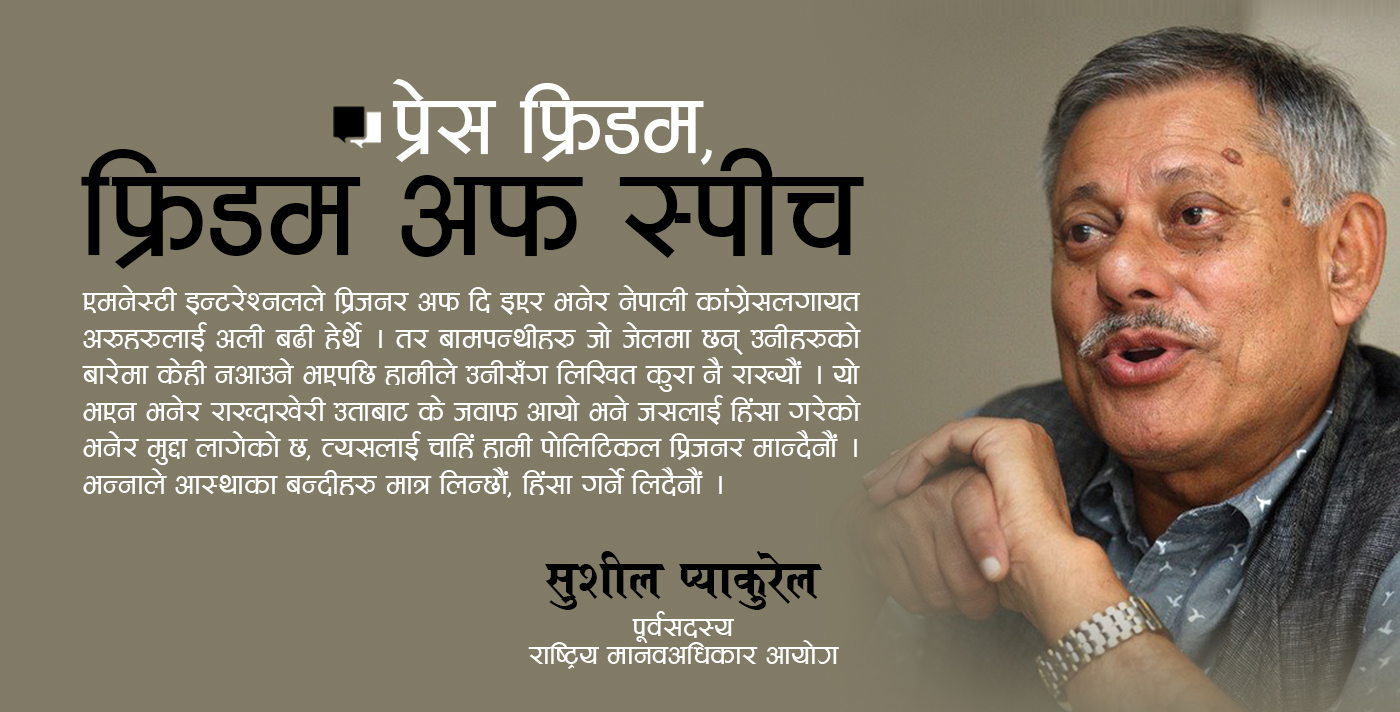 एक्ज्याक्टली, त्यो मनस्थिति सुरुदेखि छ । मानव अधिकारको कुरो गर्नु भनेको मलाई नियन्त्रण गर्न खोज्नु हो भन्ने खालको भयो । अब यहानिर मदन भण्डारीलाई सम्झिरहेका छौँ आज । उहाँको नेतृत्व र उहाँले बनाउनुभएको पार्टी । म देख्छु तिनै नेताहरु हिजो बोल्ने भाषा र आज बोल्ने भाषामा मैले फरक देखिरहेको छु । मदन भण्डारीलाई साक्षी राखेर कुरा गरौं, हिजो उहाँहरु हरेक कुरो लागू हुनुपर्छ भन्नुहुन्थ्यो । आज उहाँहरुको मनस्थिति के छ भने यो त हामीलाई नियन्त्रण गर्ने कुरा गर्दैछ भन्ने । काठमाडौँमा हेर्नुहोस् अथवा अरुतिर हेर्नुहोस् आजकल सडक बालबालिका देखिंदैनन् धेरै । राज्यले केही गर्यो होला । सडकमा भीख माग्न हिंडेका मान्छे धेरै देखिदैनन् शहरहरुमा । केही गरेर गरेको होला । आफूले गर्नुहुन्छ तर त्यसलाई अधिकारमा रुपमा हामीले स्थापित गर्नुपर्छ भन्दाखेरी नहुने । एउटा अर्को कुरा के छ भने हीनताबोध पनि छ हामीलाई । संयुक्त राष्ट्रसंघजस्तो विश्व निकायबाट हिजो हामीले प्रसस्त काम लियौं । टाढा नजाऔं, ०६२/६३ को आन्दोलनमा के संयुक्त राष्ट्रसंघले हामीलाई सहयोग गरेन् ? गर्यो । त्यसपछि उनीहरुले पनि फेरि केही नराम्रो कुरा गरे होलान् त्यसलाई हामीले कन्ट्रोल गर्नुपर्थ्यो । त्यो त राज्य कमजोर भएर हो नि त । त्यो त राज्यको निकाय हो । तर त्यसको नाममा संयुक्त राष्ट्रसंघसित कुरै गर्नुहुँदैन वा विश्व समुदायमा जानु नै हुदैन भन्ने फेरि त्यो हीनताबोध कताकता मैले देख्छु प्रकट भएको अहिलेको स्थितिमा । त्यसैले मलाई पनि के लाग्छ भने हिजो हामी जे बोल्छौँ, आफ्नो आचरण पनि त्यही गर्थ्यौं । व्यवहारमा पनि त्यहि लागू गर्न खोज्थ्यौँ । आज हामी जे बोल्छौँ त्यसलाई व्यवहारमा, आचारणमा लागू गर्न पनि हामी हिचकिचाउँछौं । किनभने त्यसले आफूलाई नियन्त्रण गर्छ किजस्तो लाग्छ । जस्तो तपाईको सुरक्षा संयन्त्रको नि सुधार हुनुपर्छ भन्ने नराम्रो कुरो थियो र यदि त्यो कुरो पहिले मान्दिएको भए, यहाँ गोलीको आँखा हुँदैन भन्ने पनि सुनियो । हामीले लड्ने क्रममा, हाम्रा पुलिसलाई चाहिं ३ महिनाको तालीम दिएर बन्दुक हातमा दिइन्छ भन्यो नि । जब तपाईलाई थाहा भयो पुलिसलाई सुधार्ने त तपाईको दायित्व थियो नि । यदि त्यसरी सुधार्नसकेको भए यस्ता ठूलाठूला घटना दुर्घटनाहरु, व्यारेकमा मान्छे हराउने कुरो त हुँदैन थियो होला नि त । अथवा हामीले त्यो शिक्षालाई ग्रहण गर्न सकेको भए त राजनीतिक व्यक्तिले राजनीतिक कारणले मान्छेको हत्या त गर्दैन थिए होला नि त । राजनीतिक व्यक्तिको हत्या पनि भयो ।
