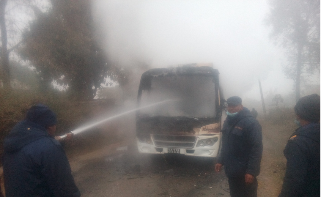 काठमाडौँ, २९ मंसिर । दाङमा गुडिरहेको एउटा बसमा आज आगो लागेको छ। तुलसीपुरबाट नेपालगञ्जका लागि छुटेको रा १ ख २३७४ नम्बरको बसमा साढे ६ बजेतिर तुलसीपुर उपमहानगरपालिका वडा नं. १३ बखरियामा आगो लागेको हो।