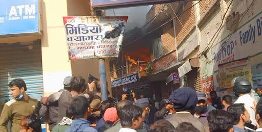जनकपुरधाम, ९ पौष । जनकपुरधामस्थित शिवचोकमा रहेको मिथिला डिपार्टमेन्टल स्टोर र रुफटप रेष्टुरेन्टमा भीषण आगलागी भएको छ । स्थानीय शिव चोकस्थित यो स्टोरको दोस्रो तल्लामा एक्कासी आगलागी भएको आगलागी नियन्त्रणको प्रयास जारी रहेको जिल्ला प्रहरी कार्यालय धनुषाले जनाएको छ ।