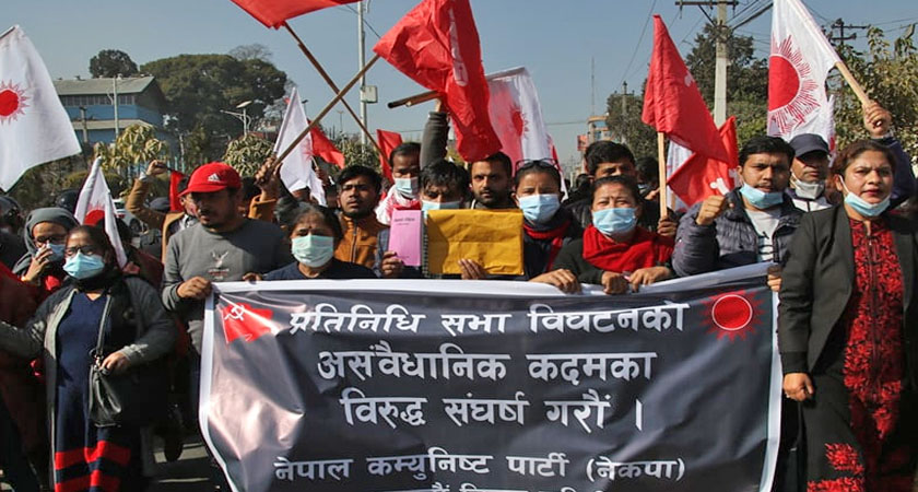 संसद विघटनको विरोधमा आन्दोलनरत नेकपा प्रचण्ड–माधव समूहले जिल्ला प्रशासन कार्यालयमार्फत प्रधानमन्त्रीलाई संविधान पुस्तक पठाएको हो ।