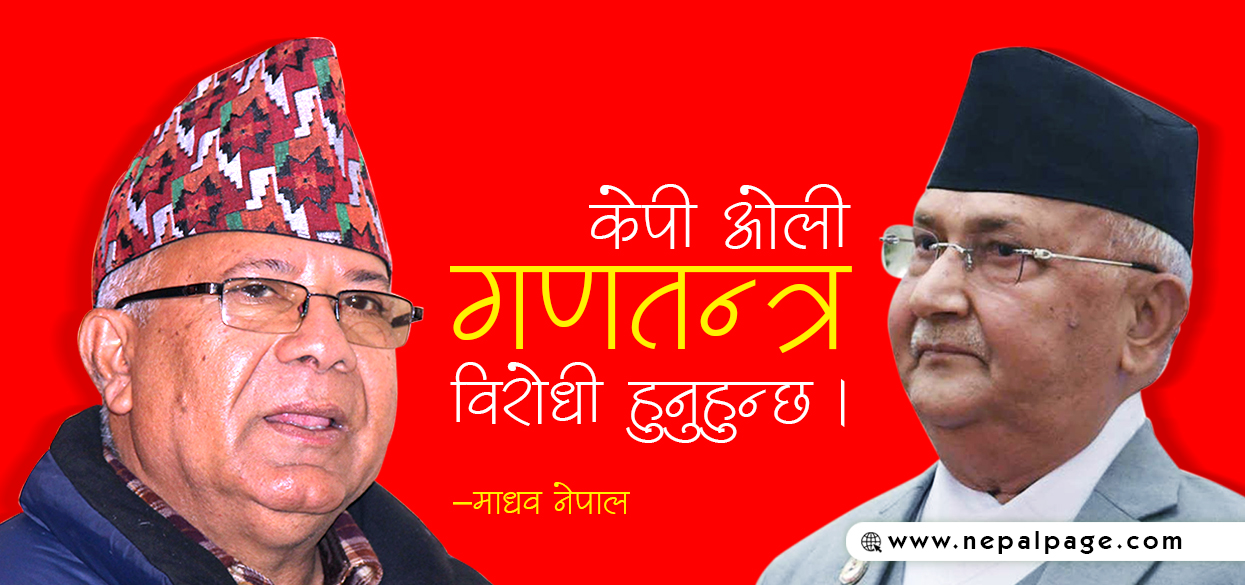 काठमाडौं । नेपाल कम्युनिष्ट पार्टी नेकपाका प्रचण्ड-नेपाल पक्षका अध्यक्ष माधवकुमार नेपालले प्रधानमन्त्री केपी शर्मा ओली गणतन्त्र विरोधी भएको बताएका छन् ।