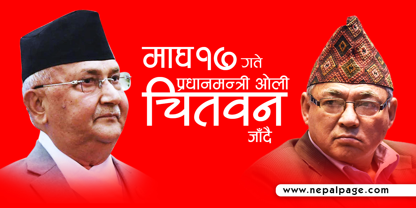 चितवन । प्रधानमन्त्री एवं नेपाल कम्युनिष्ट पार्टी (नेकपा) का अध्यक्ष केपी शर्मा ओली माघ १७ गते चितवन आउने भएका छन् । भरतपुरमा दुईवटा विकास आयोजनाको शिलान्यास र सभालाई सम्बोधन गर्न प्रधानमन्त्री ओली यहाँ आउन लागेका हुन् ।