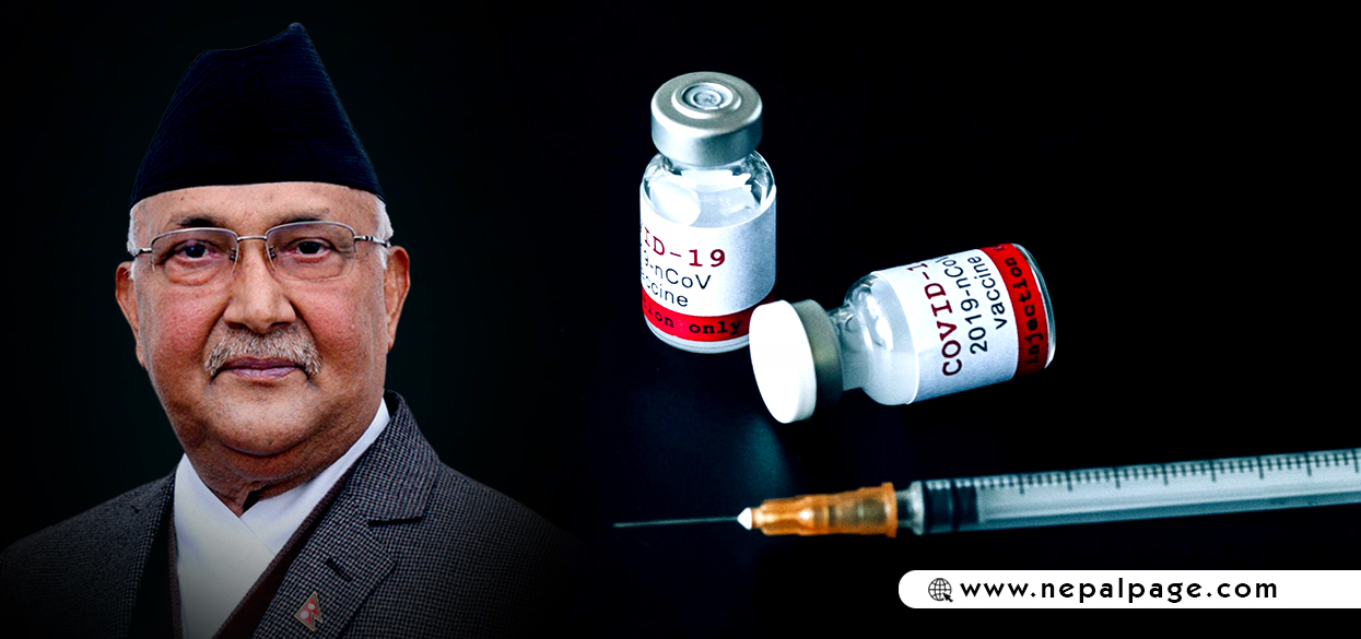काठमाडौँ । प्रधानमन्त्री केपी शर्मा ओलीले कोभिड-१९ विरुद्धको खोप ३ महिनाभित्र सबै नेपालीले पाउने बताएका छन् । खोप अभियानको शुभारम्भ गर्दै प्रधानमन्त्रीले सबै नेपालीले तीन महिनाभित्र निःशुल्क खोप पाउने बताएका हुन् ।
