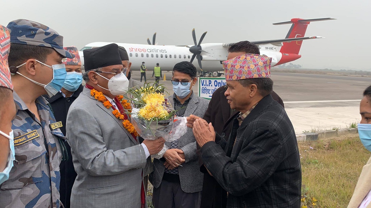 दाहाल–नेपालको स्वागतमा मुख्यमन्त्री भट्टसहित आन्तरिक मामिला तथा योजनामन्त्री प्रकाशबहादुर शाह, सामाजिक विकासमन्त्री कृष्ण सुवेदी, उद्योग वन वातावरण तथा पर्यटनमन्त्री माया भट्ट र भूमि व्यवस्था तथा कृषिमन्त्री विनिता चौधरीसँगै अन्य सांसदहरुसमेत विमानस्थल पुगेका थिए ।