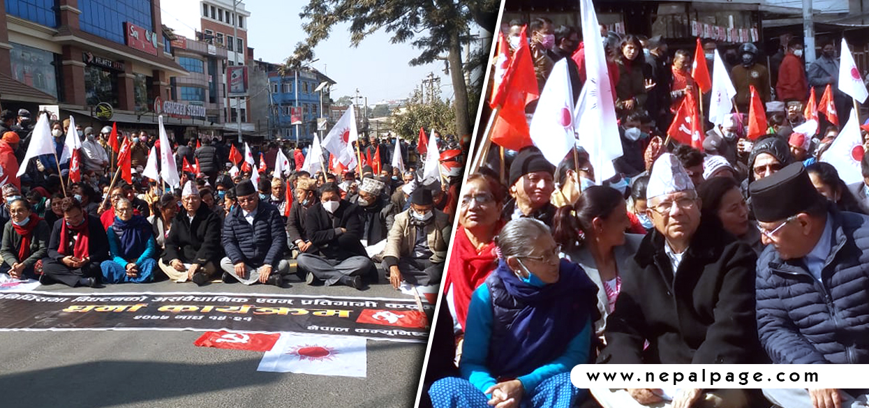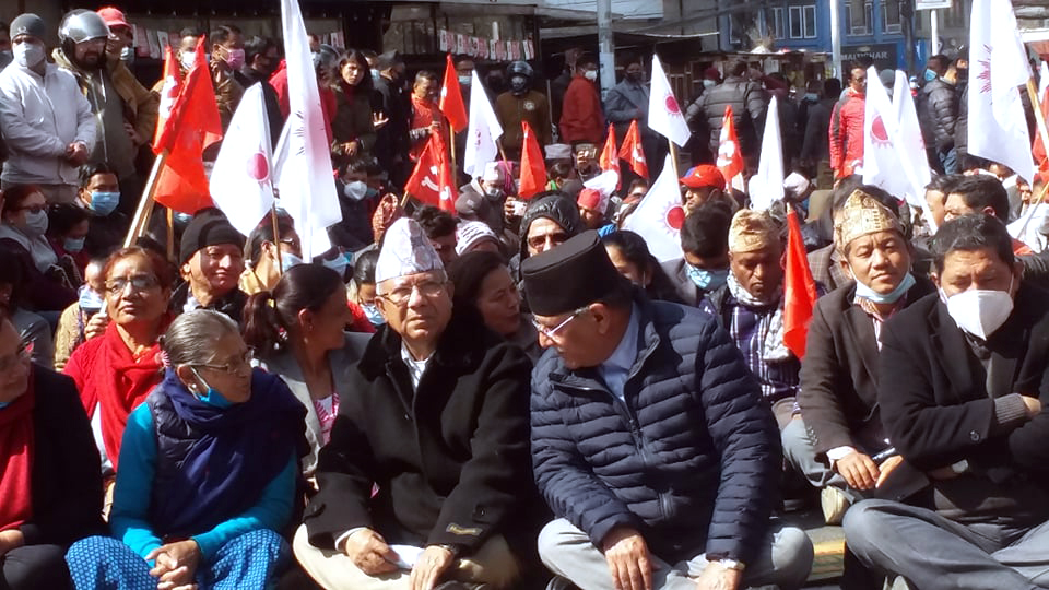 काठमाडौं । संसद विघटनको विरोधमा माइतीघरमा जारी धर्नामा नेपाल कम्युनिष्ट पार्टी (नेकपा) प्रचण्ड–माधव समूहका अध्यक्षद्वय पुष्पकमल दाहाल ‘प्रचण्ड’ र माधव नेपाल पनि सहभागी भएका छन् ।
