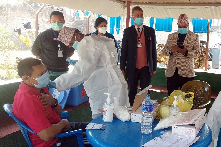ललितपुर । नख्खु कारागारका कैदीबन्दीलाई कोरोनाको खोप लगाउन शुरु गरिएको छ । जिल्ला जनस्वास्थ्य कार्यालयका प्रमुख डा.खगेश्वर गेलालले कारागारमा रहेका कैदीबन्दीको स्वास्थ्यलाई ध्यानमा राखी दुई दिनभित्र कोभिड खोप दिइने बताए ।