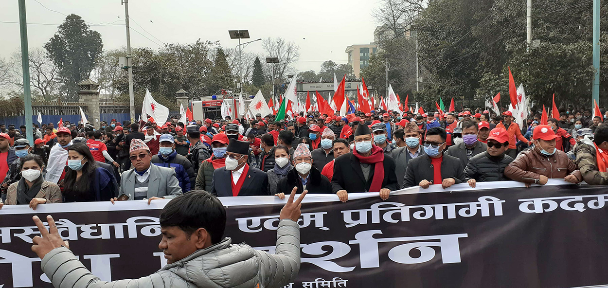 काठमाडौं । नेपाल कम्युनिष्ट पार्टी (नेकपा) प्रचण्ड-माधव पक्ष) ले आज गर्न लागेको विरोध प्रदर्शन अन्तर्गत जुलुस निस्कने क्रम शुरूभईसकेको छ ।