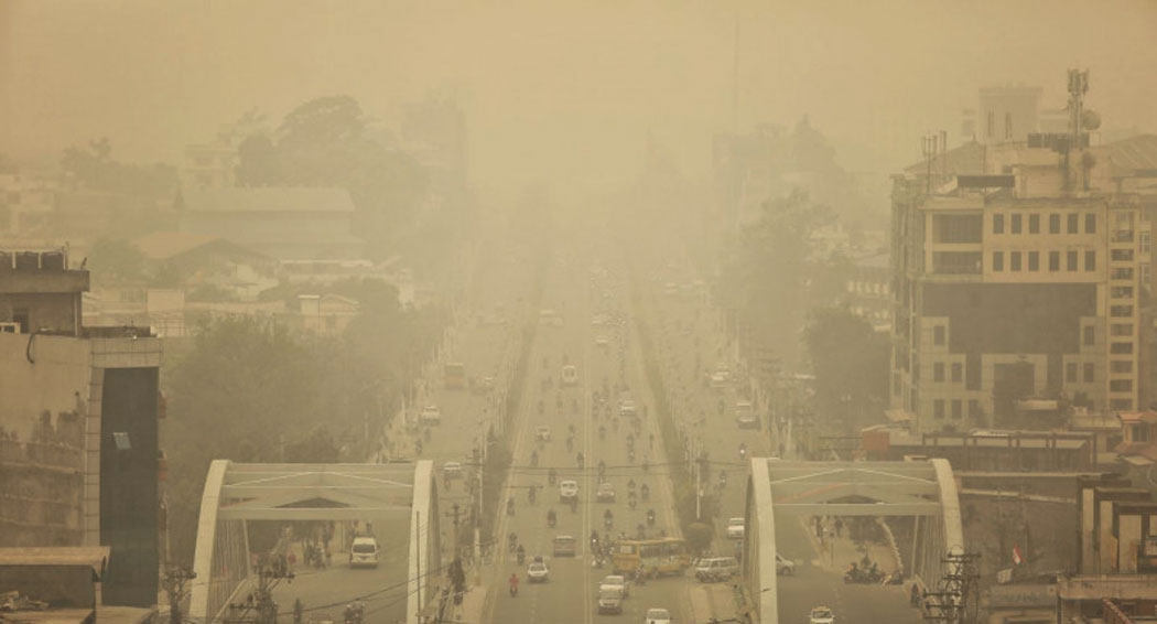 काठमाडौं । विश्वका ५० शहरमध्ये सबैभन्दा बढी वायु प्रदूषण हुनेमा काठमाडौं फेरि एक नम्बरमा पुगेको छ । प्रदूषण बढ्दा काठमाडौं उपत्यका आज धुम्मिएको छ । प्रदूषित वायुको कण र देशका विभिन्न स्थानमा लागेको डढेलोको धुंवा उपत्यकाको आकाशमा थुप्रिदा धुम्म भएको मौसमविद्को भनाइ छ ।
