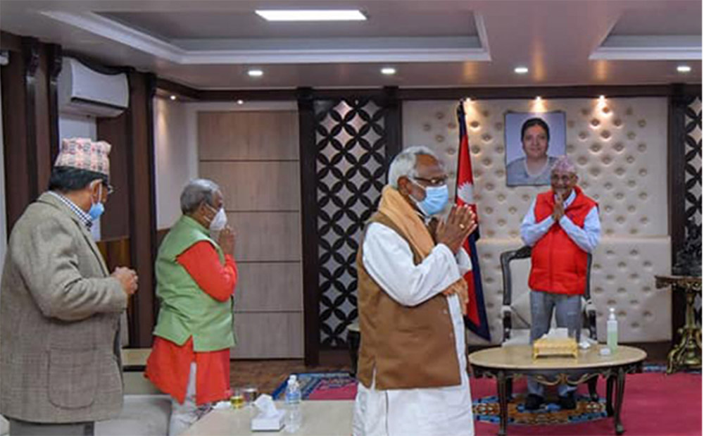 काठमाडौँ, २६ बैशाख । कांग्रेस सभापति शेरबहादुर देउवासँग डेढ घण्टा लामो छलफलपछि जसपा अध्यक्ष महन्थ ठाकुर र बरिष्ठ नेता राजेन्द्र महतो प्रधानमन्त्री केपी शर्मा ओलीलाई भेट्न बालुवाटार पुगेका छन् ।