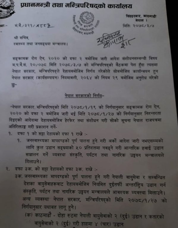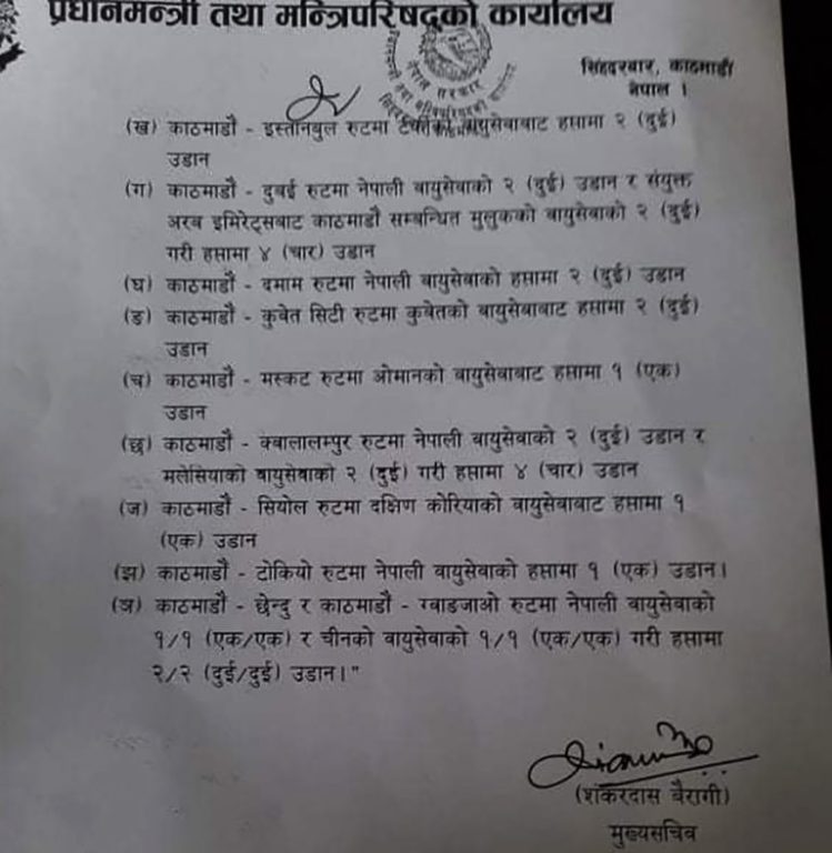 कोभिड नेपाल : आन्तरिक र अन्तर्राष्ट्रिय हवाई उडान खोल्ने सरकारको निर्णय