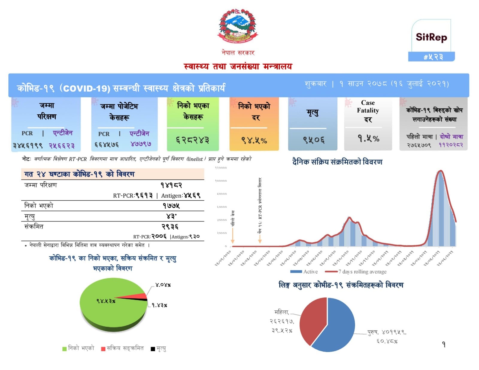 योसहित नेपालमा पीसीआर र एन्टिजेन विधिबाट गरिएको परीक्षणमा अहिलेसम्म सात लाख १२ हजार तीन सय ७३ जनामा कोरोना सङ्क्रमण पुष्टि भएको छ ।