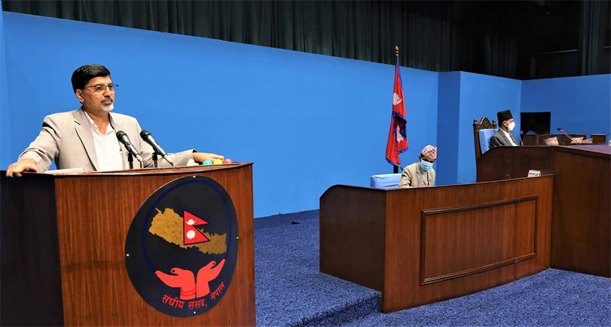 काठमाडौँ, २६ साउन । सरकारले देशको वर्तमान आर्थिक अवस्थाको जानकारी संसदसमक्ष प्रस्तुत गरेको छ । अर्थमन्त्री जनार्दन शर्माले मंगलबार प्रतिनिधिसभाको बैठकमा ‘देशको वर्तमान आर्थिक अवस्थाको जानकारी’ प्रस्तुत गरेका हुन् ।देशको वर्तमान आर्थिक अवस्थाबारे प्रतिनिधिसभालाई जानकारी गराउँदै अर्थमन्त्री जनार्दन शर्मा । वर्तमान सरकारले जिम्मेवारी सम्हाल्दा देशको अर्थतन्त्रका सूचकहरु के कस्तो अवस्थामा रहेका छन् भन्ने विषयमा तथ्याङ्कीय झलक प्रस्तुत गरिएको छ । अर्थमन्त्री शर्माले अघिल्लो सरकारले जारी गरेको अध्यादेश बजेटलाई प्रतिस्थापन गर्न विधेयक ल्याउने जानकारी दिए ।