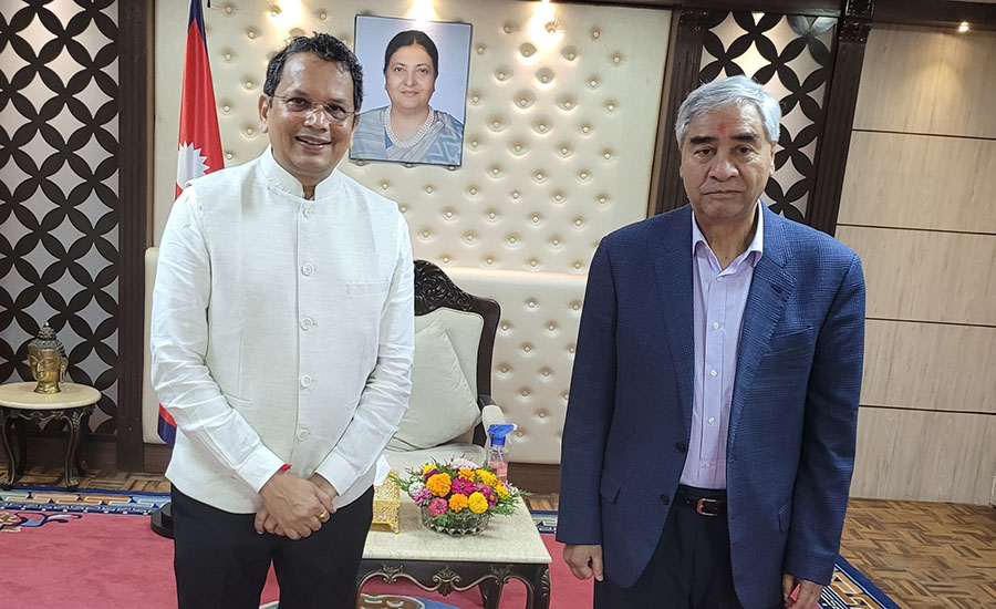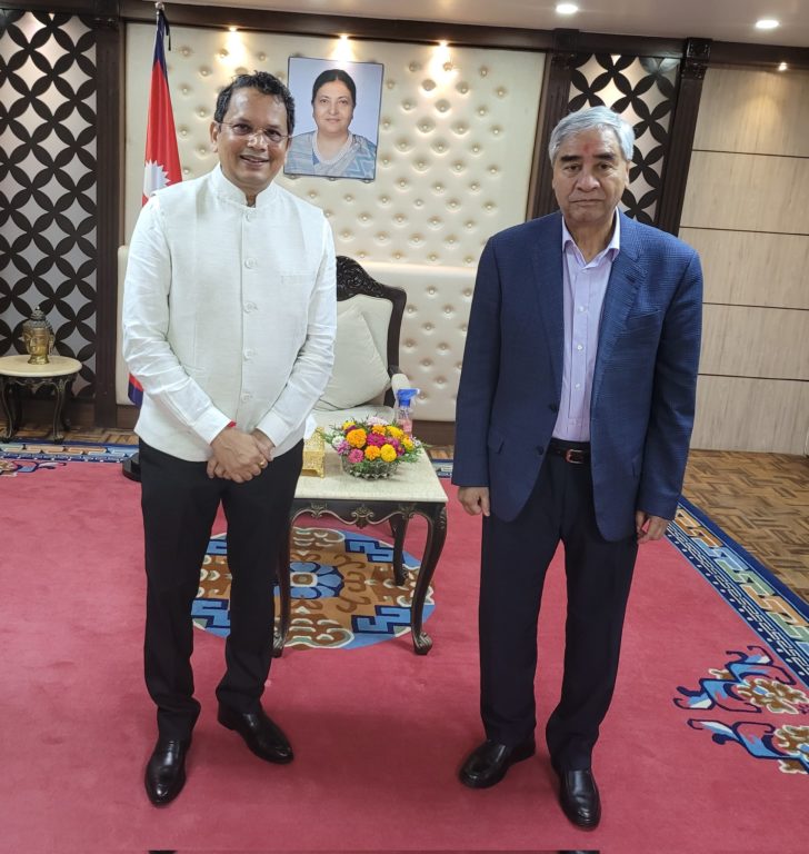 काठमाडौँ । प्रधानमन्त्री शेरबहादुर देउवा र भारतीय जनता पार्टीका विदेश विभाग प्रमुख विजय चौथाइवालेबीच प्रधानमन्त्रीको निजी निवास बालुवाटारमा भेटवार्ता भएको छ । चौथाइवाले कांग्रेसको निमन्त्रणामा चार दिने अनौपचारिक भ्रमणका लागि नेपाल आइपुगेका हुन् । उनले आइतबारै बालुवाटारस्थित प्रधानमन्त्रीको सरकारी निवासमा प्रधानमन्त्री एवं कांग्रेस सभापति देउवासँग शिष्टाचार भेटवार्ता गरेका छन् ।