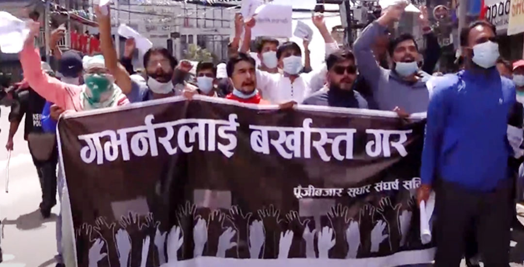 राष्ट्र बैंकका गभर्नरको राजीनामा माग गर्दै प्रदर्शन