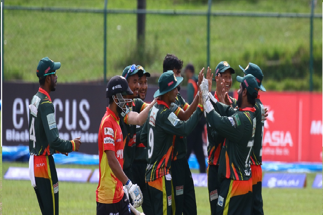 विवेक यादव ४, रित गौतम २, सहन अर्चाचिगे २ बिक्रम सोब १ रनमा आउट हुँदा लोकेश बम र नन्दन यादव खाता नखोली पेभेलियन फर्किए ।पोखरालाई सस्तैमा रोक्न चितवनका कमल सिंह ऐरीले ४ विकेट लिए । उनले मात्र २० रन खर्चिए । यस्तै करिम जनत र सेकुग्गे प्रसन्नले २र२ विकेट लिए । सोमपाल कामी र सागर ढकालको नाममा १र१ विकेट रह्यो ।