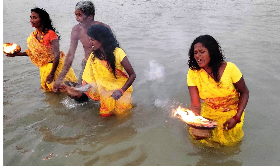‘पापकी छय, धर्मकी जय, हई भगतकाली राघो बन्नी।’ यस्तै–यस्तै आ–आफना इष्टदेवताको नाम फलाक्दै धामीझाँक्री मिर्दङ (मादल), झ्याली, ढोलपिपहीजस्ता बाजाको तालमा कमला नदीमा शपथग्रहण गर्न पुगेका हुन् । कमला नदीमा स्नान गरिए कमलेश्वरी देवीले तान्त्रिक विद्याको वर दिने तथा योग पाको हुने जनविश्वासका कारण वर्षेनी कमलामा स्नान गर्नेको सङ्ख्या बढ्दै गएको गणेशमानम चारनाथ नगरपालिकाको गोदार बस्ने भरत साह बताउँछन् । भूत मेलामा स्नान गरेपछि घर आउने बेलामा भक्तजनले कमला नदी र गङ्गासागरको शुद्ध पानी आ–आफ्नो घर लैजाने गर्छन् ।