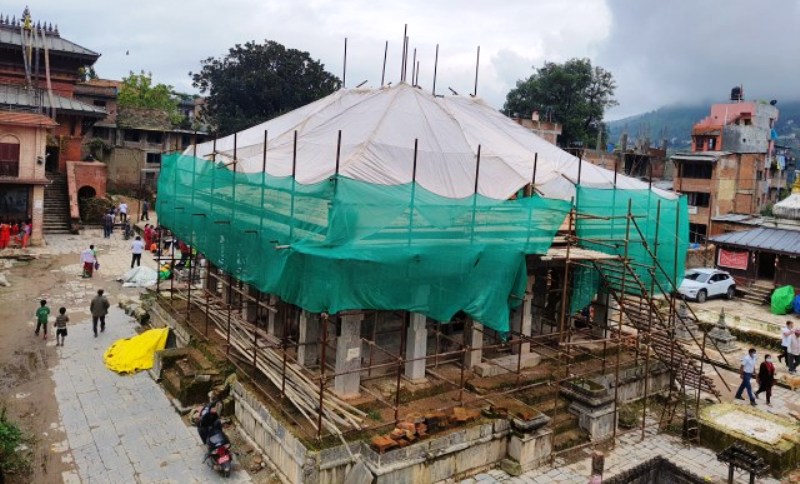 मन्दिर पूरै पुनःनिर्माण सम्पन्न गर्न ६४ फिट चार इन्चको गारो लगाउनुपर्ने हुँदा हालमात्रै २० फिट माथि गारो लगाउने काम भएको समितिले जानकारी गराएको छ । छ वर्षअघिको भूकम्पमा मन्दिर पर्दा श्रीलङ्का सरकारको रु पाँच करोड आर्थिक सहयोगमा मन्दिर पुनःनिर्माण गर्ने भनिएको थियो । मन्दिर पुनःनिर्माणमा कसैबाट चासो नदिइएपछि गत वर्ष असार २० गते क्षमापूजा गरी २२ गतेबाट समिति र पुरातत्व विभागबीच रु तीन करोड आठ लाखमा सम्झौता भई काम अघि बढेको थियो । लगभग एक हजार ५०० वर्षअघि शिखरशैलीमा निर्माण भएको सो मन्दिर यहीवर्ष २०७८ असार मसान्तसम्म निर्माण सम्पन्न गर्ने सम्झौता भएकोमा अझै कति समय लाग्ने हो टुङ्गो लागेको छैन । लिच्छविकालतिर देशभर अनिकाल र खडेरी लाग्दा अन्न अनि वर्षा तथा सहकाल अनेकौँ नामले पुकारिने रातो मच्छिन्द्रनाथको मुलुक प्रवेशले सहकाल भएको मच्छिन्द्रनाथ गुठीका मूलपूजारी कमलराज बज्राचार्यले बताए । मुलुकमा मच्छिन्द्रनाथले सबैै जगतको लोककल्याण गरेको स्मरणमा प्रत्येक वर्ष कृष्ण प्रतिपदादेखि रथजात्रा गर्ने परम्परा रहि आएको छ । हालमन्दिर निर्माणाधीन अवस्थामा रहँदा ‘वर्षा र सहकालका देवता’ रातो मच्छिन्द्रनाथलाई बुङ्मतिको एक पाटीमा राखिएर नित्य पूजाआजा अनि रेखदेख गरिरहेको पूजारी हेम बज्राचार्यले बताए ।