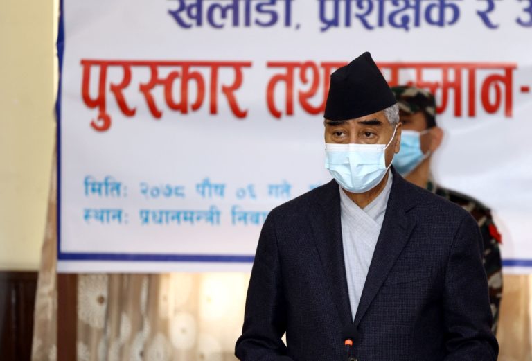 सो अवसरमा प्रधानमन्त्री देउवाले साफ च्याम्पियनसिपमा उपविजेता बनेको राष्ट्रिय फुटबल टोलीका सदस्यलाई नगदसहित सम्मान गरेका छन् । गत असोज १५ देखि ३० गतेसम्म भएको खेलमा नेपाल भारतसँग फाइनलमा पराजित भएको थियो । सरकारले खेलाडीलाई जनही रु पाँच लाख, तीन जना प्रशिक्षकलाई जनही रु तीन लाख र अफिसियललाई प्रमाणपत्रसहित सम्मान गरेको हो । सम्मानित हुने खेलाडीमा किरण चेम्जोङ, अनन्त तामाङ, दिनेश राजवंशी, सुमन अर्याल, गौतम श्रेष्ठ, सुजल श्रेष्ठ, तेज तामाङ, रोहित चन्द, पुजन उपरकोटी, सुमन लामा, नवयुग श्रेष्ठ, सुरज ठकुरी, नितिन थापा, विशाल राई, सुनिल बल, आशिष लामा, सन्तोष तामाङ, आयुष घलान, विशाल श्रेष्ठ, मनिष डाँगी र कमल थापा छन् ।