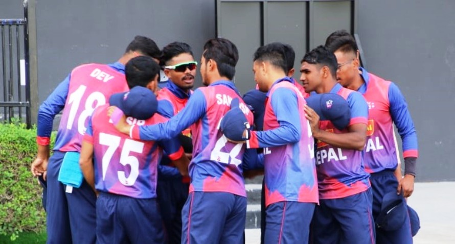 त्यसअघि संयुक्त अरब इमिरेट्स (युएई) को दुबईस्थित आइसिसी एकेडेमीमा टस हारेर ब्याटिङ गरेको नेपालले निर्धारित ५० ओभरको खेलमा ४२ दशमलव ३ ओभरमा सबै विकेट गुमाएर २३९ रन बनायो । नेपालका बसिर अहमदले सर्वाधिक ५६ रनको योगदान दिए । उनले ६१ बल खेल्ने क्रममा एक छक्का र सात चौका प्रहार गरे । यस्तै विवेक मगरले ७१ बलमा ६ चौकासहित ५० रन बनाए । मोहमद आदिल आलमले ४२ बल खेल्दै पाँच छक्का र दुई चौकाको मद्दतमा ४९ रन जोडे । यस्तै शेर मल्लले २१, दिपेश कँडेलले १५ तथा अर्जुन साउदले १० रन बनाए ।