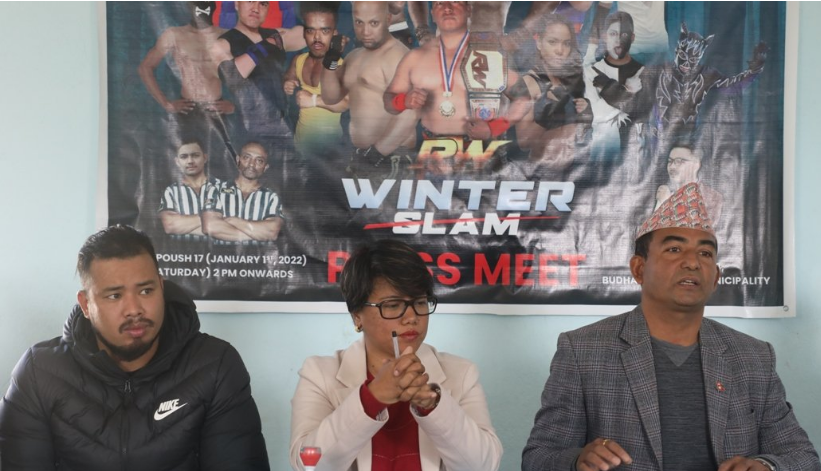 काठमाडौँ, १६ पुस । नेपाल रिङ रेस्लिङ सङ्घको आयोजनामा शनिबारदेखि प्रथम ‘आरडब्लु विन्टर स्लाम राष्ट्रिय रेस्लिङ’ प्रतियोगिता हुने भएको छ ।