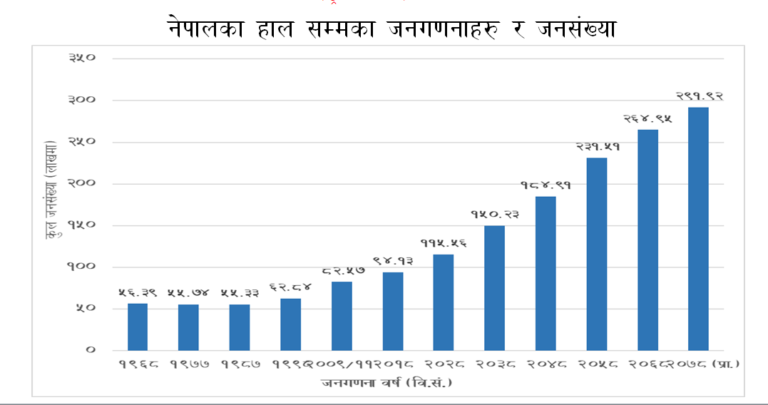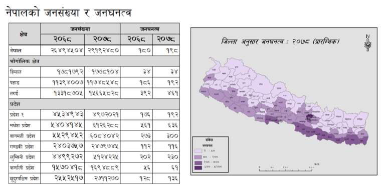 यसअघि २०६८ मा गरिएको गणनाअनुसार नेपालको जनसंख्या २ करोड ६४ लाख ९४ हजार ५०४ थियो ।