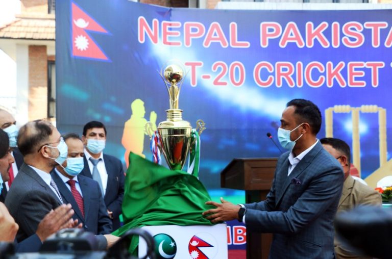 काठमाडौँ, ९ फागुन । पाकिस्तानी दूतावासको आयोजनामा नेपाल–पाकिस्तान मैत्रीपूर्ण टि–ट्वान्टी क्रिकेट प्रतियोगिता हुने भएको छ । दूतावासले आज यहाँ आयोजना गरेको पत्रकार सम्मेलनमा आगामी मार्च २ (फागुन १८) देखि सातौँ संस्करणको प्रतियोगिता आयोजना हुन लागेको जानकारी दिएको हो ।